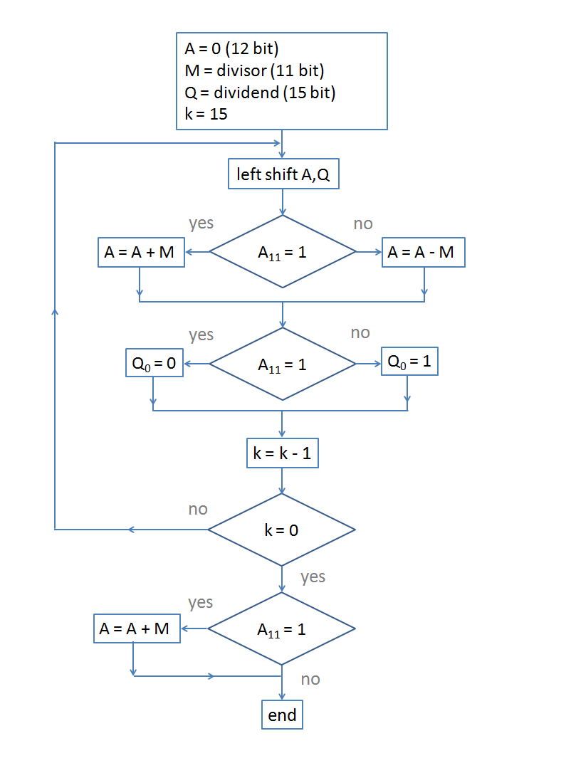 Required: quotient and remainder of a fifteen bit number divided by an eleven bit number. This is for the third boxed part of the algorithm: